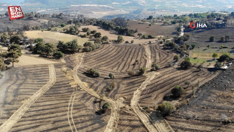 Çanakkale'de yanan alanlar havadan görüntülendi
