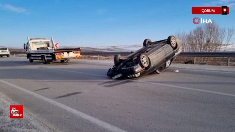 Çorum'da köpeğe çarpmamak için ani manevra yapıp takla attı