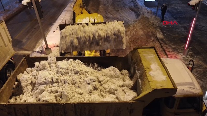 Belediye ekipleri, kardan içme suyu elde etmek için karları toplayarak Çomar Barajı havzasına döktü.
