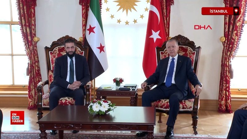Cumhurbaşkanı Erdoğan, Suriye Cumhurbaşkanı Ahmed Şara ile Dolmabahçe'de bir araya geldi. Görüşmede, Dışişleri Bakanı Hakan Fidan, Milli Savunma Bakanı Yaşar Güler, MİT Başkanı İbrahim Kalın, Savunma Sanayii Başkanı Haluk Görgün, Suriye Dışişleri Bakanı Esad Hasan Şeybani ve bazı yetkililer de yer aldı.