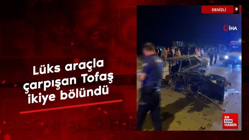 Denizli'de lüks araçla çarpışan Tofaş ikiye bölündü