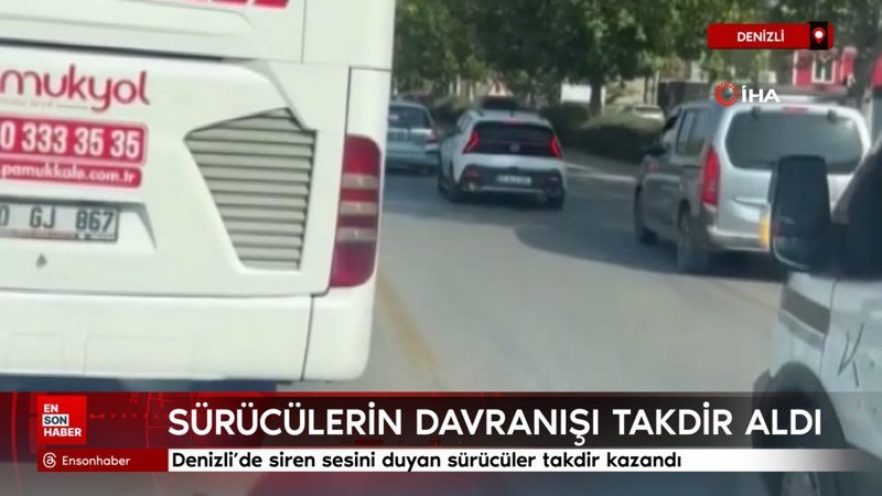 Denizli’de siren sesini duyan sürücülerin duyarlı davranışı takdir topladı