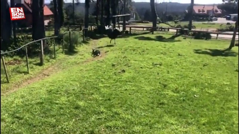 Bu talihsiz adam kendisini kovalayan deve kuşundan kaçmaya çalışıyor.