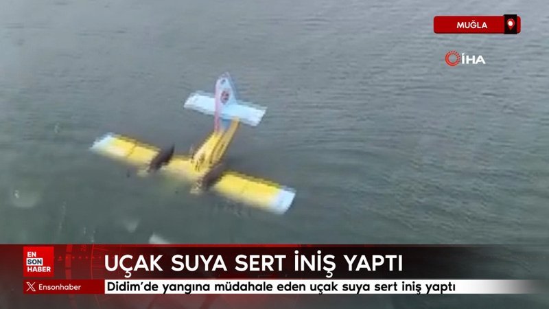 Didim'de yangına müdahale eden uçak suya sert iniş yaptı