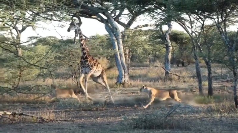 Saldırgan hayvanların avlanma taktiklerine tanıklık eden turistler, zürafaya saldırı anlarını kayıt altına aldı.