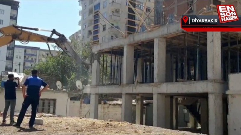 Diyarbakır’da 3 katlı kaçak yapı belediye ekiplerince yıkıldı