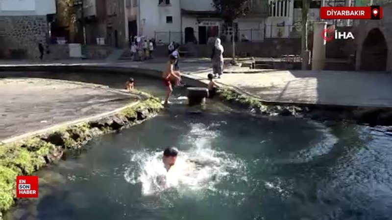 Kentte serinlemek ve eğlenceli zaman geçirmek isteyen çocuklar, Sur ilçesindeki Anzele Parkı'nda bulunan süs havuzunu doldurdu.Aileleri tarafından da takip edilen çocuklar suyun ve oyunun keyfini doyasıya çıkarıyor.