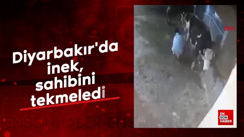 Çermik ilçesinde bir besicinin bakımını yaptığı inek tarafından tekmelendiği anlar kameraya yansıdı.