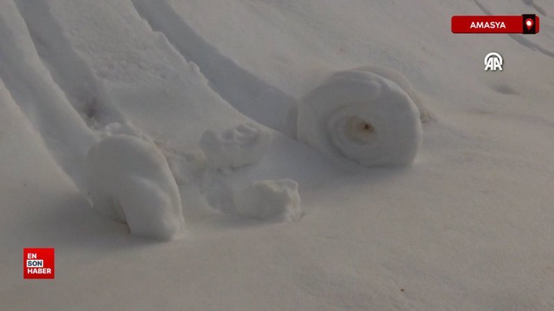 Doğada ender oluşan kar ruloları Amasya'da tekrar görüldü