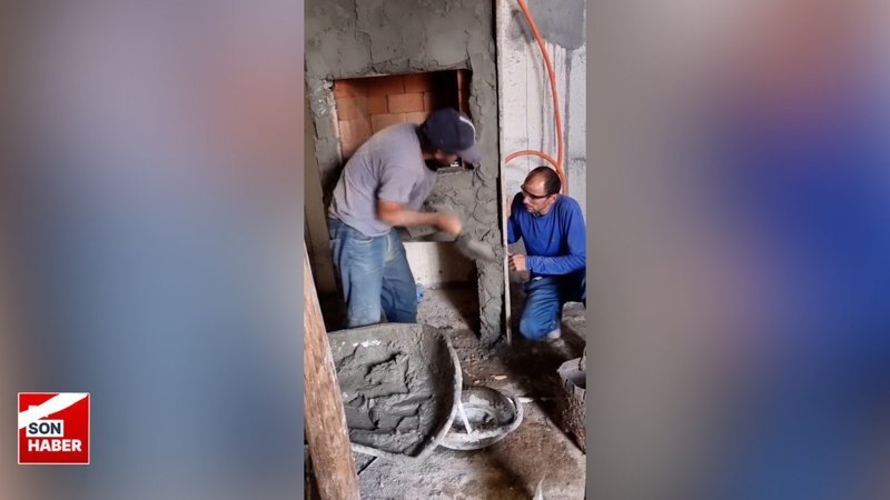 Duvar yerine arkadaşının yüzüne harç atan usta
