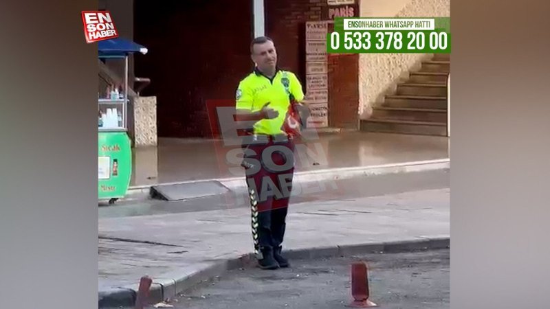 Duyarlı trafik polisi Türk bayrağını çöpten aldı