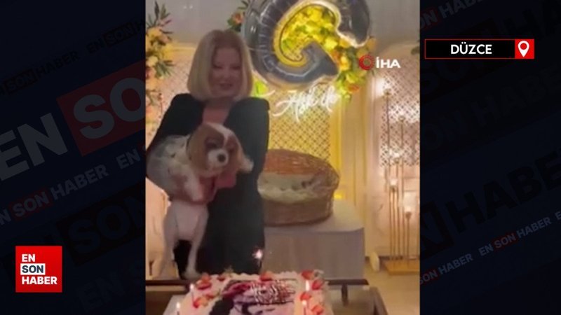 Düzce'de bir kadın, "Gofret" ismini verdiği köpeğinin 6. yaş gününü partiyle kutladı. Partinin ilerleyen kısımlarında katılımcılar çalan müziklerle doyasıya eğlendi.