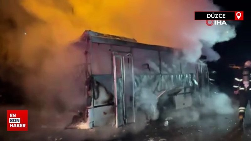 Düzce’de park halindeki işçi servisi alev topuna döndü. Yangın maddi hasar ile atlatıldı.