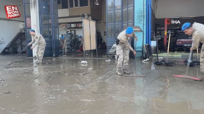 Son günlerde etkisini gösteren sağanak yağışın ardından Karadeniz'in kıyı kesimlerinde yaşanan sel felaketinden etkilenen Düzce'de temizlik çalışmalarına askeri birlikler de katıldı.