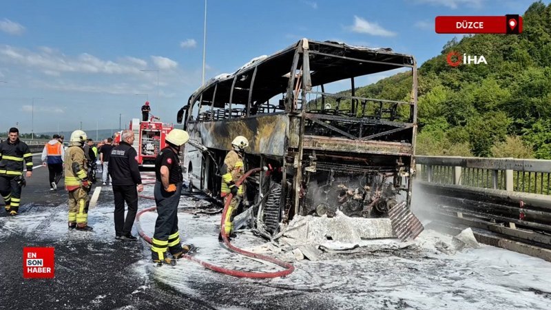 Düzce'de yolcu otobüsü alevlere teslim oldu