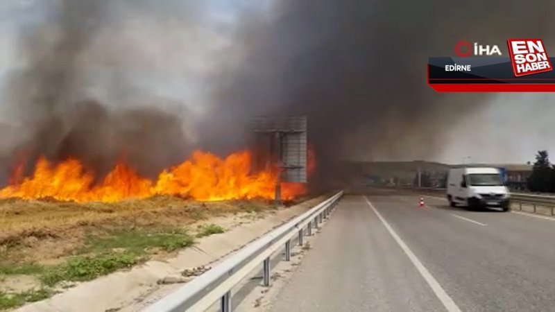 Edirne’de anız yangının buğday tarlasına sıçramasının ardından İstanbul-Edirne D-100 kara yolu trafiğe kapandı.