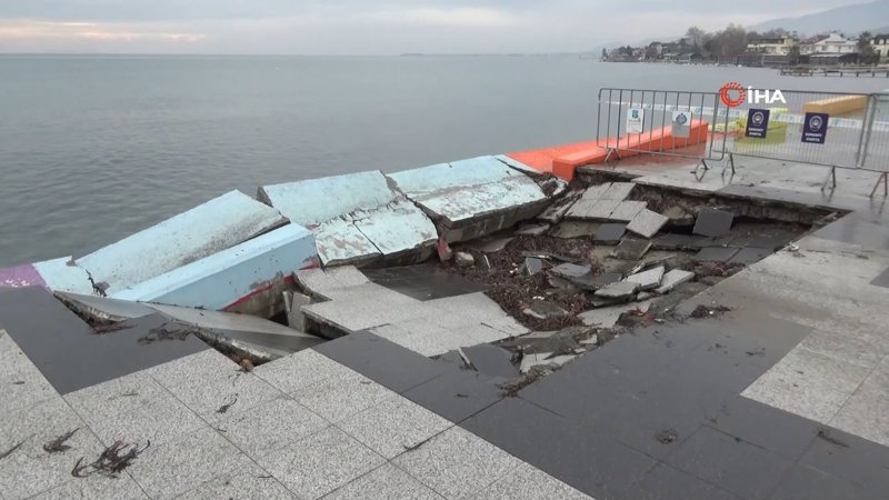 Balıkesir’in Edremit ilçesinde yaklaşık 2 haftadır etkili olan lodos fırtınası sebebiyle Akçay kordonunun bir kısmı çöktü. Kordonun çöken kısmı yetkililer tarafından emniyet şeridine alındı.
