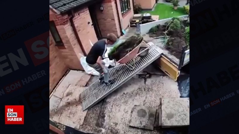 El arabasındaki toprağı üzerine deviren talihsiz genç