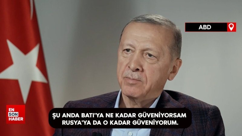 Amerikan PBS kanalına verdiği mülakatta Rusya'ya güvenip güvenmediği sorulan Cumhurbaşkanı Erdoğan, Batı'nın Türkiye'yi 50 yıldır AB kapısında beklettiğini hatırlatarak iki tarafa da aynı oranda güvendiğini söyledi.