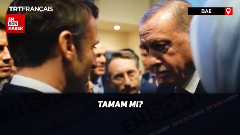 Cumhurbaşkanı Erdoğan, Dubai'de düzenlenen iklim zirvesi kapsamında Fransa'dan mevkidaşı Macron ile ayaküstü sohbet etti. İki lider arasındaki diyalog, gündeme damgasını vurdu.