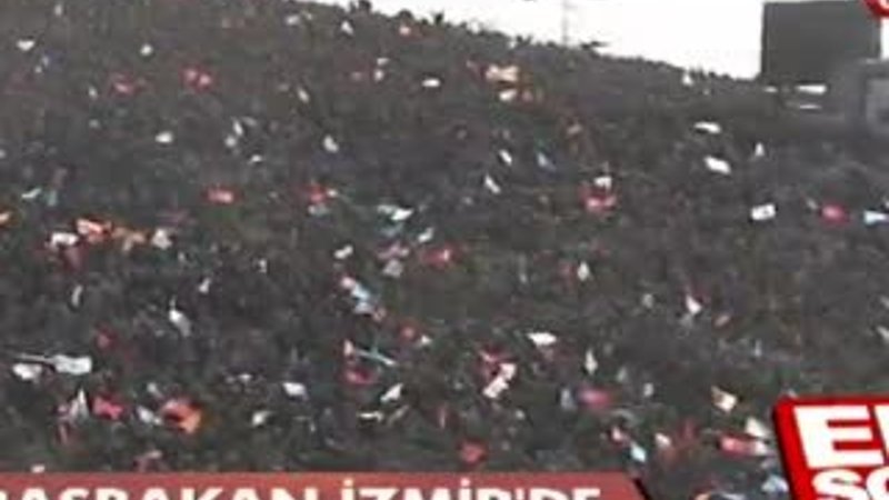 Medya buda mı montaj. Kes, kırp istediğin gibi parçaları topla aldatamazsınız.İşte İzmir burda. Size teşekkür ediyorum. Başbakan'ını bağrına basan İzmirlilere teşekkür ediyorum. 30 Mart seçimleri milletimiz için, ülkemiz için, İzmir için hayırlara vesile olsun.