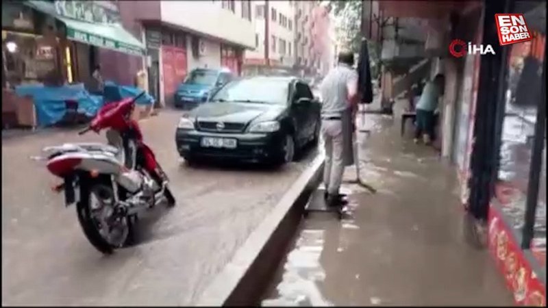Erzurum'da iş yerlerini su bastı, esnaf temizlemek için seferber oldu