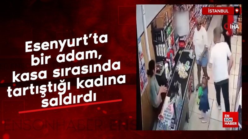 İstanbul Esenyurt’ta bulunan bir zincir markette kasa sırasında ortalık karıştı. Bir adam, tartıştığı yabancı uyruklu kadını kızının önünde darp ederken, çevredeki vatandaşlar adamı zorla uzaklaştırdı.