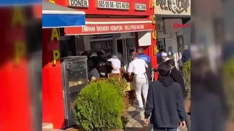 Kaldırım işgali denetimi yapan zabıta ekipleri ile esnaf arasında çıkan saksı kavgası bir vatandaş tarafından kaydedildi.