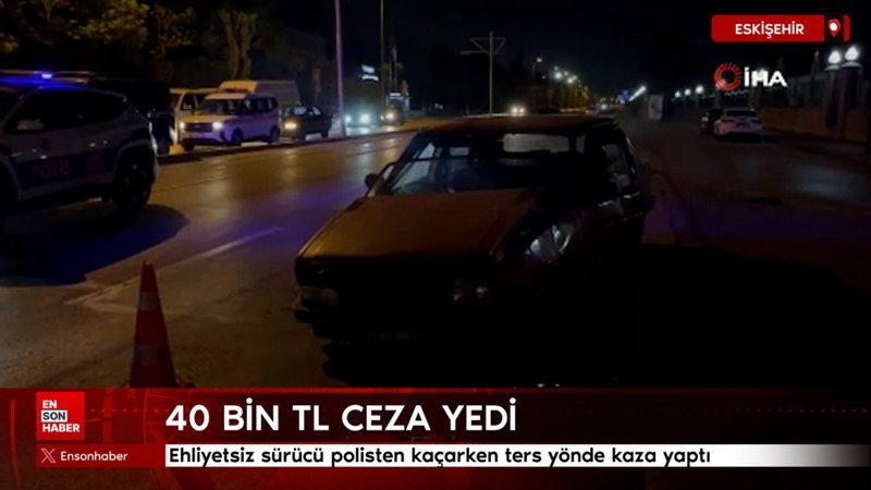 Eskişehir'de polisin 'Dur' ihtarına uymayıp yarım saat boyunca kaçan otomobilin sürücüsü, girdiği ters yönde kaza yaptıktan sonra yakayı ele verdi. Ehliyetine daha önceden el konulduğu belirlenen ve alkol testini reddeden sürücüye 40 bin TL ceza kesildi.