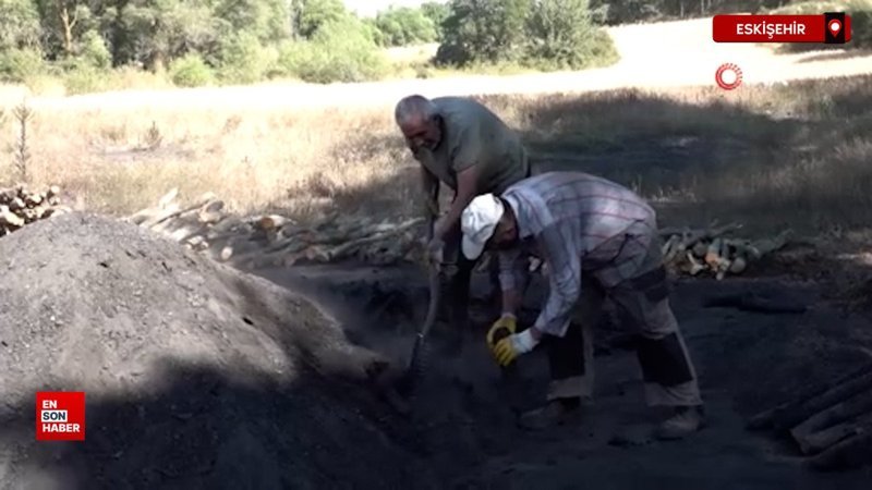 Eskişehir'in Seyitgazi ilçesinde yılın 5 ayı boyunca meşeyi birçok işlemden geçirerek odun kömürü üreten üreticiler, ağacı yakarak elde ettikleri odun kömürü için gece gündüz başında nöbet tutuyor.