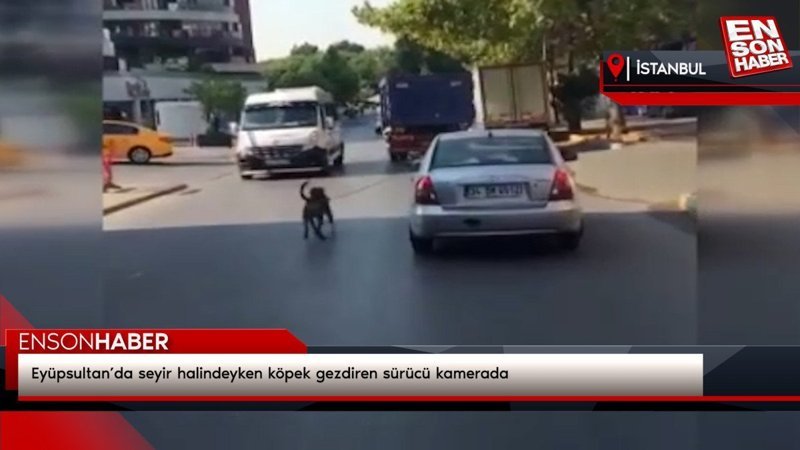 Eyüpsultan’da seyir halindeyken köpek gezdiren sürücü kamerada