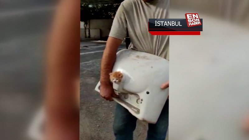 Fatih'te, kafasını lavabo deliğine sıkıştıran yavru kediyi inşaat işçileri kurtardı. İşçilerin lavaboyu çekiçle kırıp kediyi kurtarmaları cep telefonu kamerasına yansıdı.