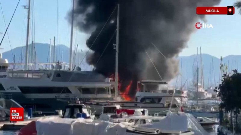 Fethiye'deki yangında motoryat ve 3 tekne alevlere teslim oldu