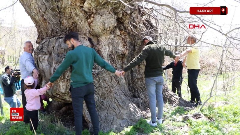 Hakkari'deki 500 yıllık ceviz ağacının kovuğuna 12 kişi sığdı