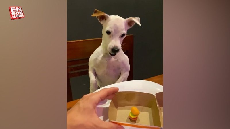 Bu sevimli köpek hamburgerinin boyutuna sinirleniyor.