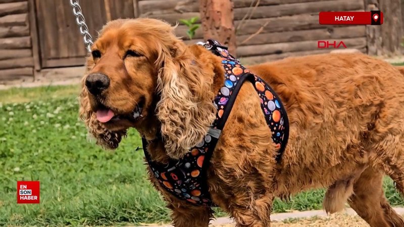 Hatay'ın Samandağ ilçesinde restoran işletmecisi Nergis Ekşi'nin 3 ay önce kaybolan İngiliz Cocker cinsi köpeği Çilek, boş arazide bir ağaca bağlı halde bulundu.
