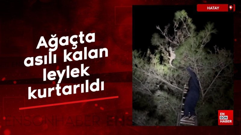Hatay'da ağaçta asılı kalan leylek kurtarıldı