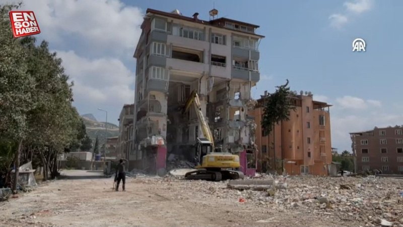 Hatay'da ağır hasarlı binaların yıkımı sürüyor
