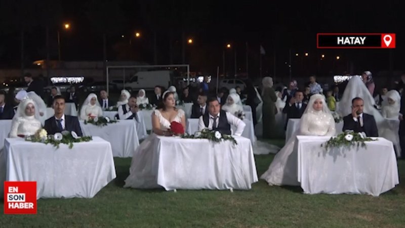 Hatay'da depremzede 100 çift için toplu düğün töreni: Dünyaevine girdiler