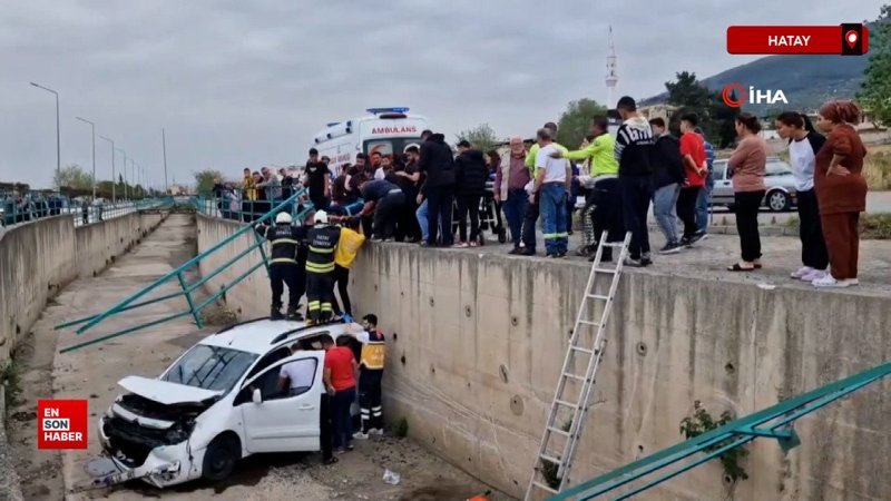 Hatay’da kadın sürücüsünün fren yerine gaza basması üzerine su kanalına uçan araçtaki 2 kişi yaralandı.