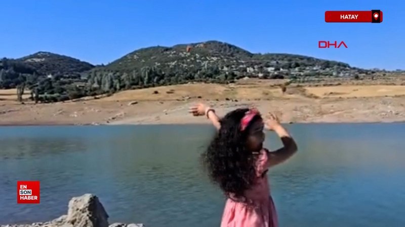 Hatay'ın Yayladağı ilçesinde orman yangınına müdahale ederken baraj gölünden su alan Sikorsky tipi askeri helikopterin pilotu, Hifa Sakarya'ya (5) el salladı.