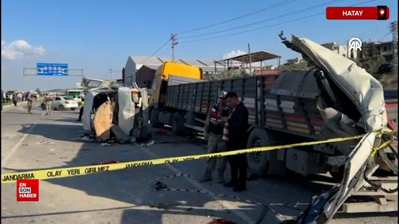 Hatay'da yolcu servisi park halindeki tıra çarptı
