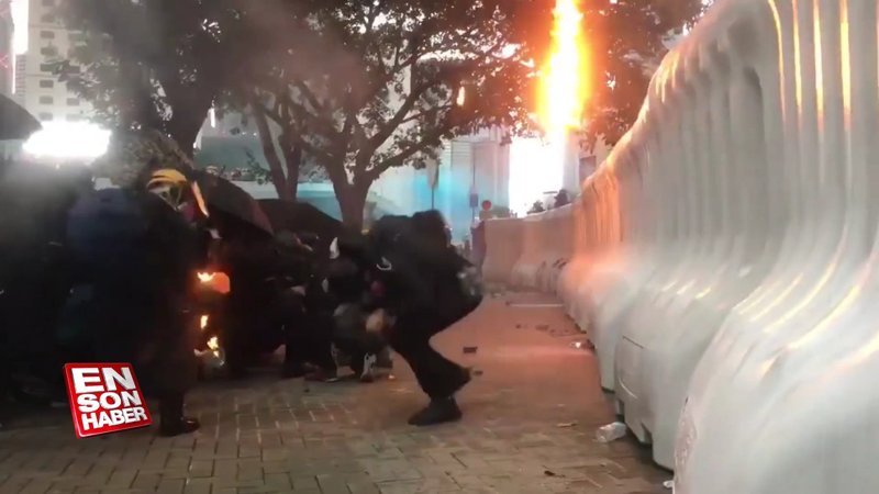 Hong Kong'da göstericiler molotof atmaya devam ediyor