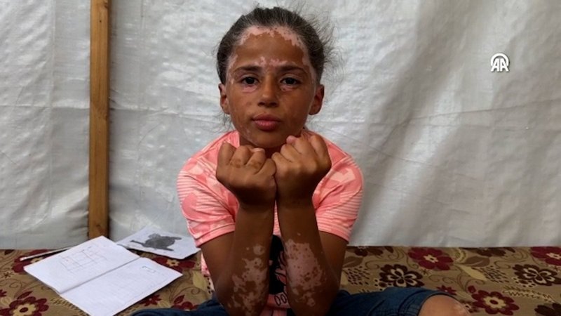 İsrail'in Gazze Şeridi'ne yönelik saldırılarında yaşadığı korkuyla saçları beyazlayan ve önce yüzünde sonra da bütün bedeninde beyaz lekeler çıkan küçük kız çocuğu Lana Halil Şerif, tedavi olmak ve eskisi gibi "güzel" olmak istiyor.