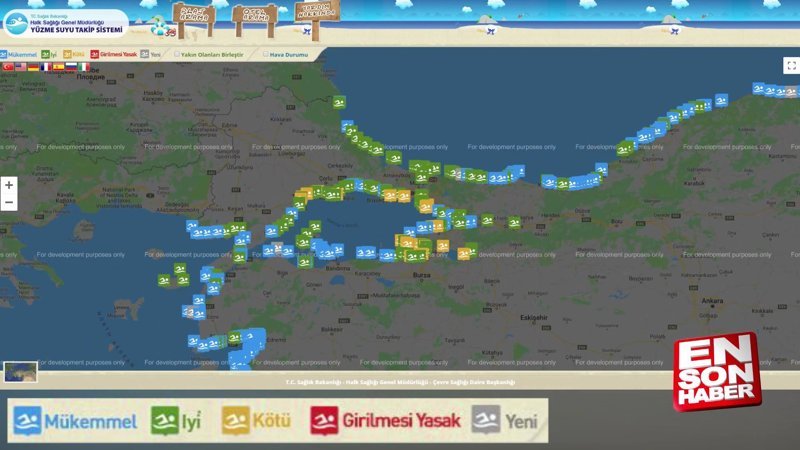 Sağlık Bakanlığı, Türkiye'nin plajlarında yaptığı analiz sonuçlarını Yüzme Suyu Takip sistemi adı verilen sitede yayınlamaya başladı.