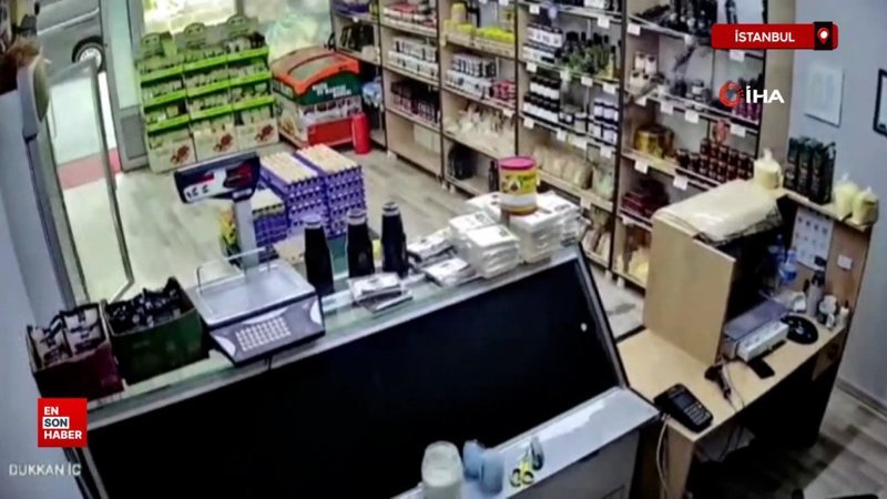 İstanbul’da meydana gelen depreme Büyükçekmece’deki dükkanında yakalanan esnaf, panikle kendini dışarıya attı. Dükkanın içindeki rafta yer alan şişelerin yere düştüğü anlar ise güvenlik kamerasına yansıdı.