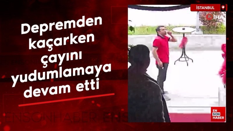 İstanbul'da depremden kaçarken çayını yudumlamaya devam etti