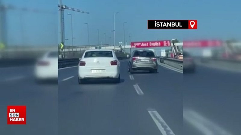 Yol verme tartışmasına girerek birbirleriyle inatlaşan sürücülerden biri zikzak çizerek diğer aracın önünü kestiği anlar cep telefonu kamerasına saniye saniye yansıdı.
