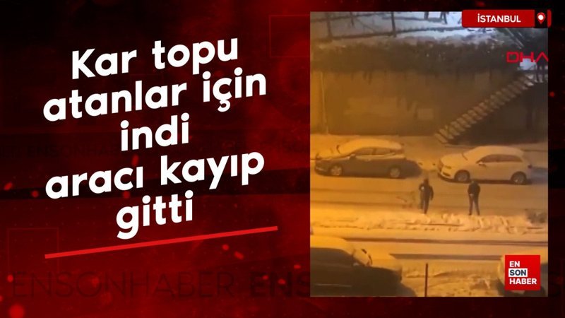 Başakşehir'de yolda kar topu oynayanlar bu sırada oradan geçen hafif ticari araca kar topu attı. Sürücü direksiyondan hızla inerek kar topu atanlara tepki gösterirken, kaymaya başlayan araç ise park halindeki araçlara çarparak durabildi. Olay anı cep telefonu kamerasına yansıdı.