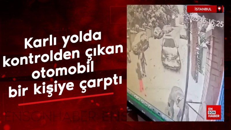 İstanbul'da karlı yolda kontrolden çıkan otomobil bir kişiye çarptı